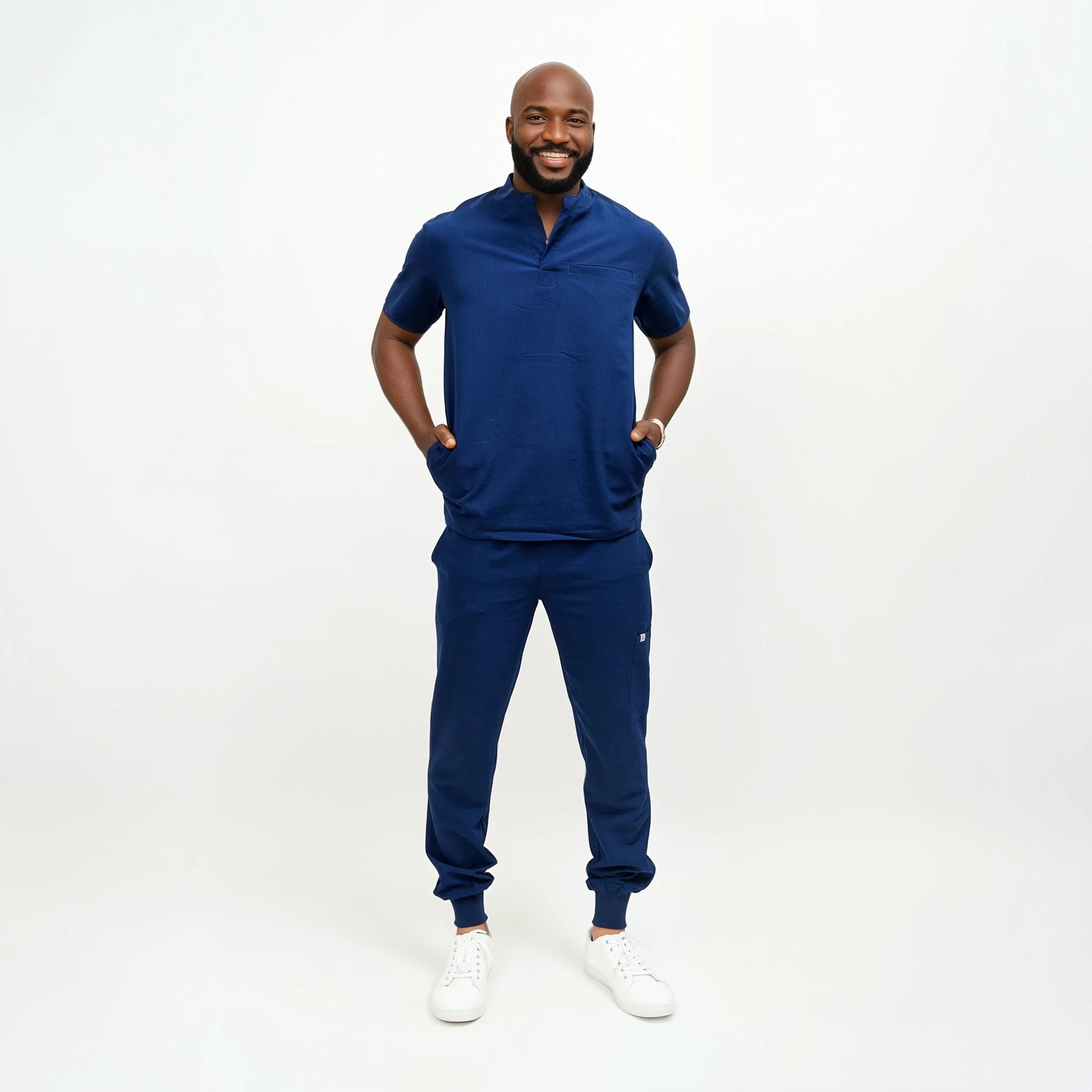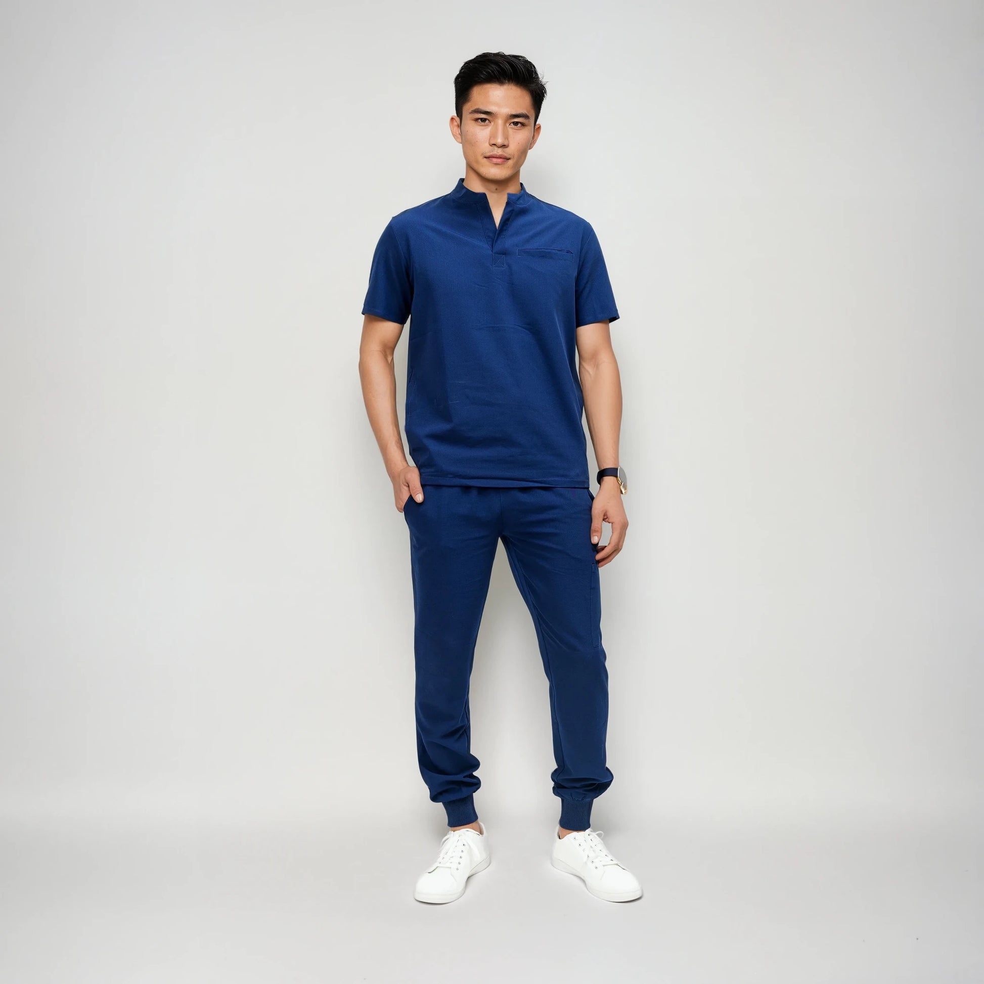 Men's Round Neck Scrubs Top with Jogger Scrubs Pant.